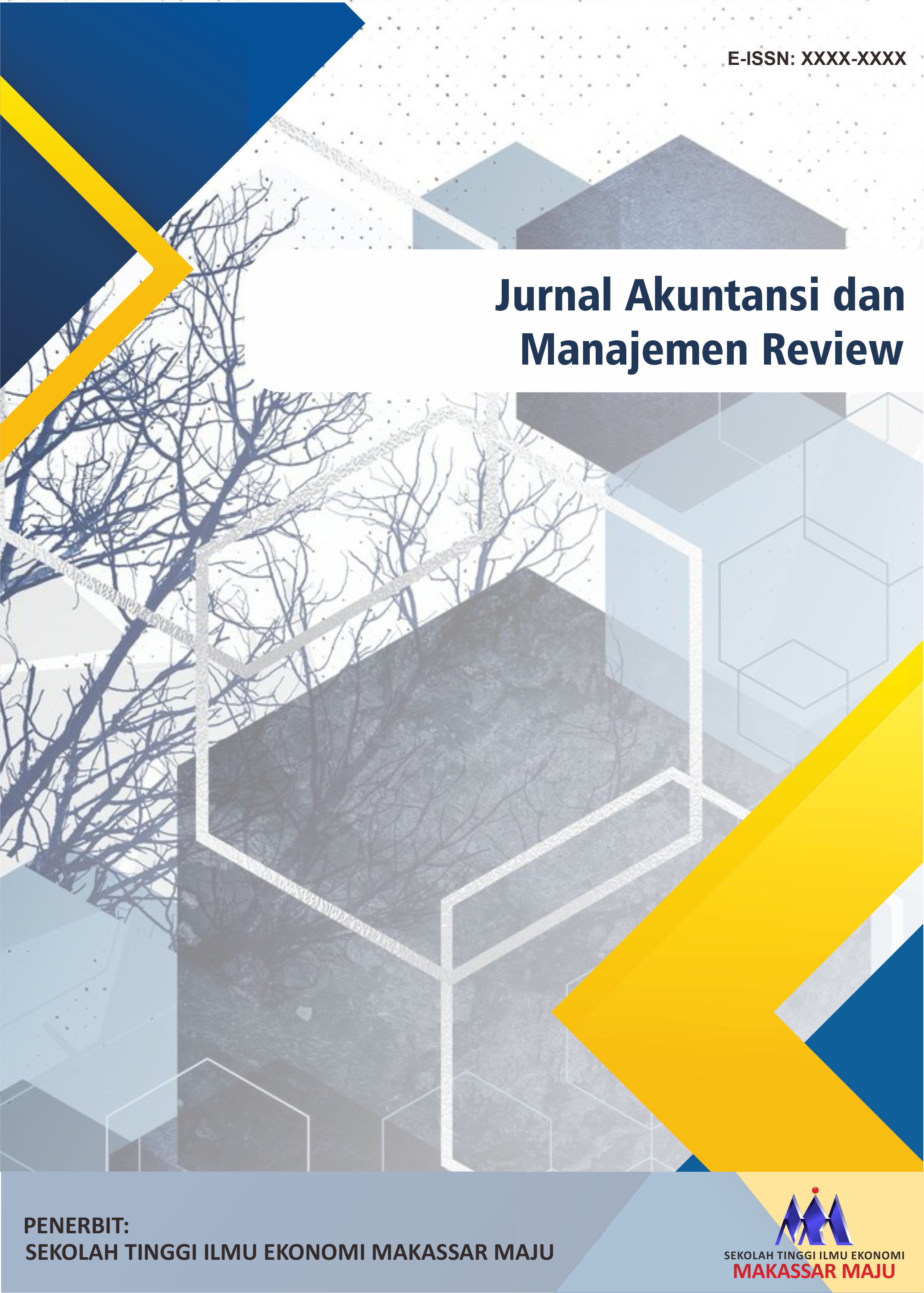 Jurnal Akuntansi dan Manajemen Review adalah jurnal berkala yang diterbitkan pada bulan April, Agustus dan Desember oleh STIE Makassar Maju. Jurnal Akuntansi dan Manajemen Review memuat artikel dalam bidang Akuntansi (yang meliputi Akuntansi Keuangan, Akuntansi Manajemen, Akuntansi Perpajakan, Akuntasi Syariah, Auditing dan Akuntansi sektor publik) dan Manajemen (yang meliputi Manajemen Sumber Daya Manusia, Manajemen Keuangan, Manajemen Pemasaran dan Manajemen Strategi). Artikel yang diterbitkan dalam Jurnal Akuntansi dan Manajemen Review merupakan artikel yang belum pernah diterbitkan maupun dalam proses penerbitan oleh penerbit lain. Artikel-artikel yag diterbitkan oleh Jurnal Akuntansi dan Manajemen Review telah melalui penelaahan oleh Mitra bestari (Peer reviewers).